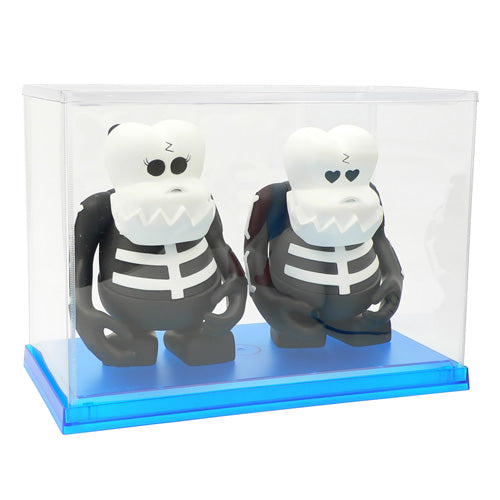 Vetrinetta economica in plastica con base rettangolare blu trasparente e dimensioni interne: 28 cm x 15 cm x 18 cm. Può essere facilmente regolata in altezza con l'uso di un taglierino. I toys nelle foto sono usati solo a scopo dimostrativo e non sono inclusi.