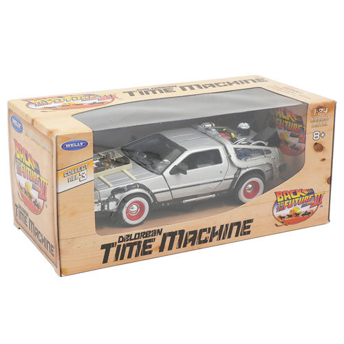 Modellino in scala 1:24, prodotto da Welly, della Delorean apparsa nel terzo capitolo della trilogia di Back to the Future. Il toy è lungo circa 18 cm ed è realizzato in metallo, con alcuni particolari in plastica. Le porte si aprono ad ali di gabbiano.
