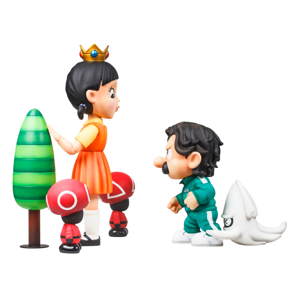 Il designer di HK Fools Paradise omaggia l'evento televisivo del 2021 con questo mashup fra Squid Game e Super Mario, in cui Mario gioca a "Un, due, tre, stella!" nel ruolo di Seong Gi-hun (numero 456), sotto gli occhi vigili della bambola robot Peach e dei soldati Toad. Il set è realizzato in vinile ed è stato prodotto in soli 499 pezzi. Mario, Peach e Toad sono alti rispettivamente 32 cm, 56 cm e 18 cm.