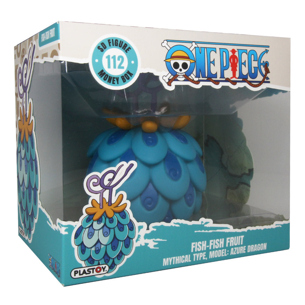 Salvadanaio in plastica, prodotto da Plastoy, che replica il frutto Woh Woh, uno dei frutti del diavolo del manga di Eiichiro Oda One Piece. Il toy è alto circa 12 cm.