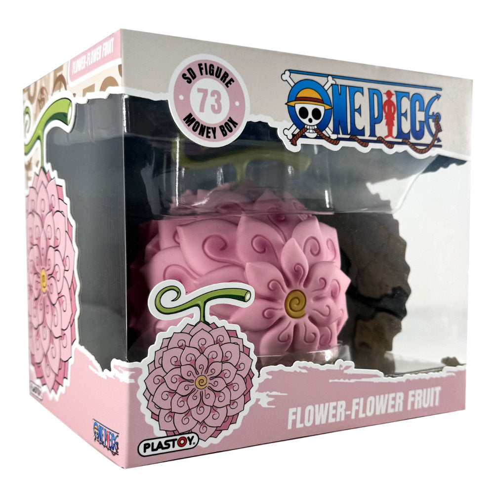Salvadanaio in plastica, prodotto da Plastoy, che replica il frutto Fior Fior, uno dei frutti del diavolo del manga di Eiichiro Oda One Piece. Il toy è alto circa 12 cm.