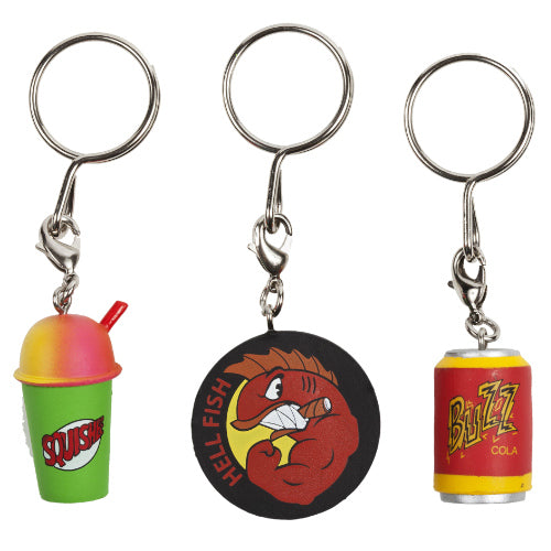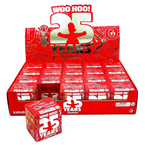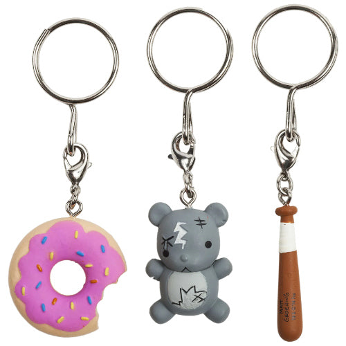 Kidrobot celebra il 25-esimo anniversario de I Simpson con questa serie di piccoli portachiavi che riproducono alcuni degli oggetti più cari ai fan della serie culto di Matt Groening. 16 diversi design assortiti casualmente, fra cui: la lattina di birra Duff, il ciuccio di Maggie, il sassofono di Lisa, lo skateboard di Bart, l'orsetto di Mr. Burns e il pesce a tre occhi Blinky.