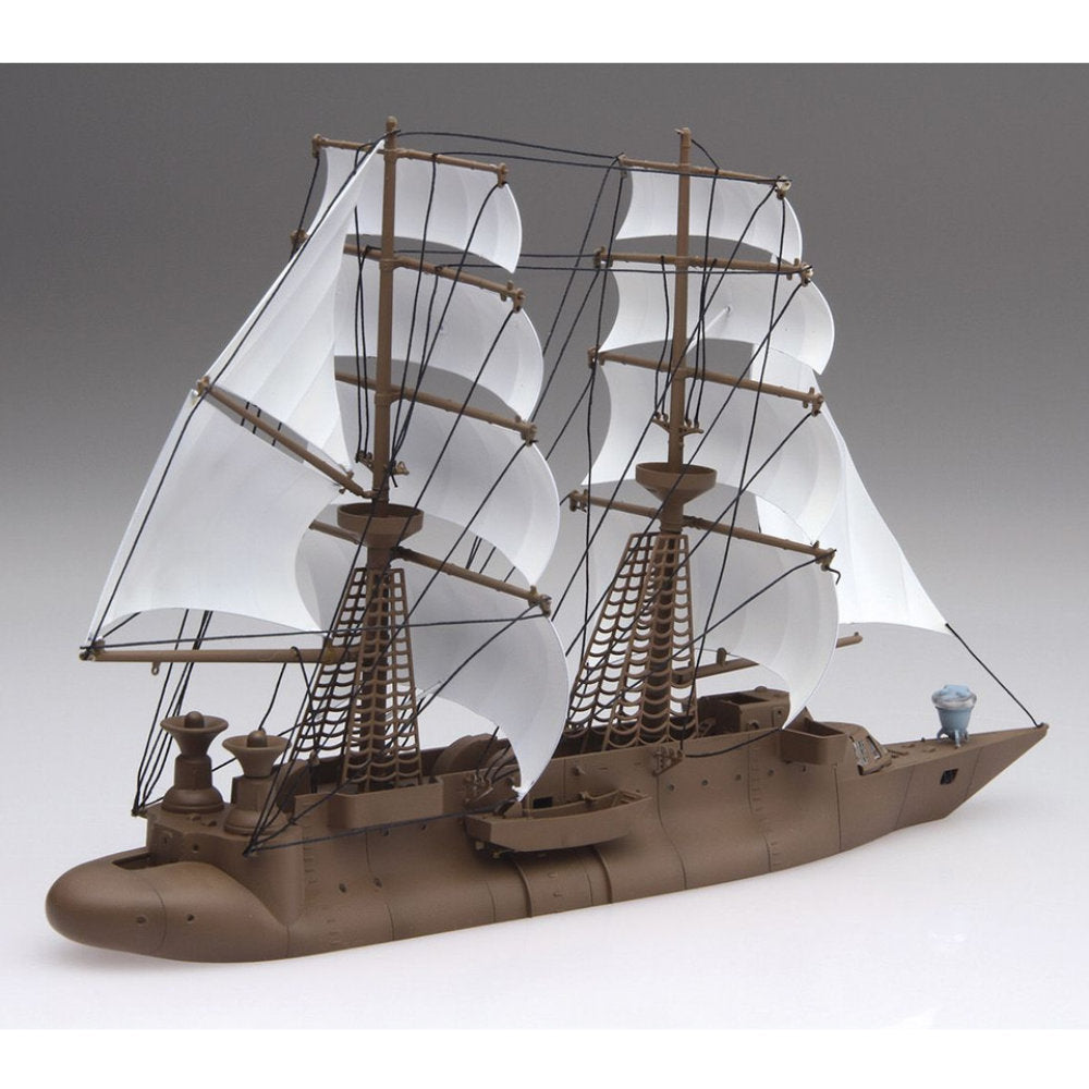This plastic model kit, produced by Aoshima, reproduces Captain Dyce's ship, the Barracuda, from Hayao Miyazaki and Nippon Animation's series "Future Boy Conan" in 1/200 scale. The model is only partially coloured and requires glue for assembly.