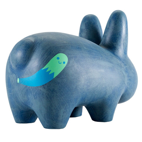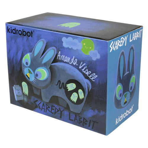 A few years from the release of Wood Labbit at SDCC 2009, Kidrobot went back to work with Amanda Visell on Frank Kozik's platform toy. Scaredy Labbit is about 25 cm (10 in) long and it comes in a beautiful illustrated box.