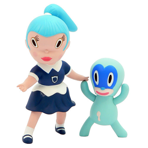 This blue version of Wild Girls Beverly is the third color variant of this toy created by Gary Baseman. Beverly and Chou Chou's hands are magnetized and each toys comes with a flower-shaped base. Beverly stands 15 cm tall and Chou Chou 9 cm.