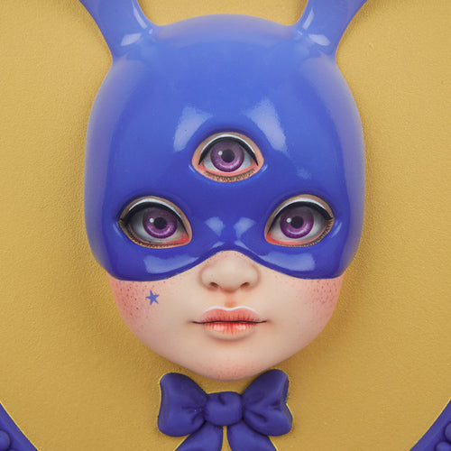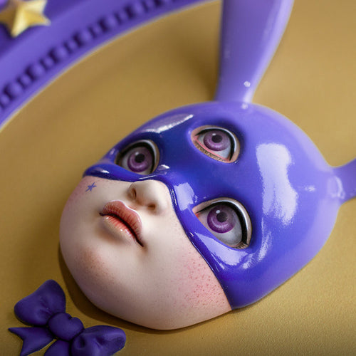 Measuring approx. 12" tall and 8" wide, the three-dimensional Mystic Bun Wall Hanging by Xhanthi is perfect for displaying anywhere you might need inspiration from a mysterious masked bunny. Take it as a sign: this Atomic Misfit original creation is sure to delight and inspire the weird and whimsical side of you!